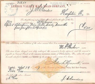 1877~Hazleton PA Luzerne~Signed J. S. SANDERS~L.V.R.R. Stamped Revenue VOUCHER