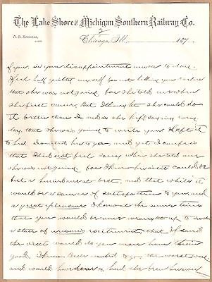 1870 LAKE SHORE & MICHIGAN SOUTHERN RAILWAY CO LETTERHEAD LETTER Chicago,IL