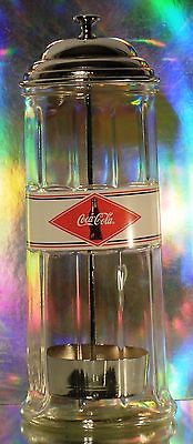 OLD STYLE COCA-COLA SODA FOUNTAIN GLASS STRAW DISPENSER JAR & LID 11"X4-1/2" USA