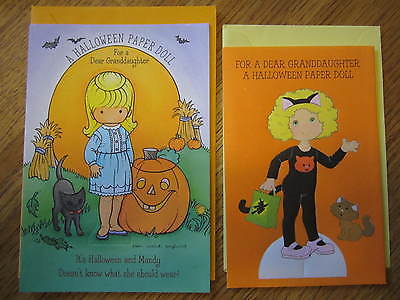 2 vintage Halloween paper doll cards with env uncut unused Am Greetings Hallmark