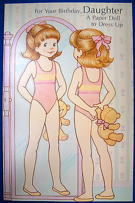 vintage 1990s BIRTHDAY PAPER DOLL Greeting Card for daughter, Drawing Board, TX