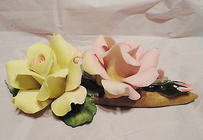 CAPODIMONTE PORCELAIN DOUBLE ROSE TABLE TOP PIECE MADE IN ITALY SIGNED SAVASTANO