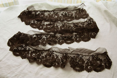 ANTIQUE VICTORIAN SILK LACE 57" NET GOTH TRIM DOLL HAT
