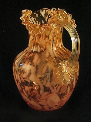 ANTIQUE CLEAR APRICOT SPATTER GLASS WATER PITCHER 1880 - 1890