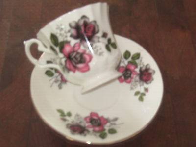 Clare Bone China Footed Teacup & Saucer With Roses