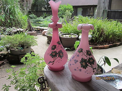 MATCHING PAIR OF PONTIL ANTIQUE DRESSER BOTTLES - PINK COLOR - 1890-1910
