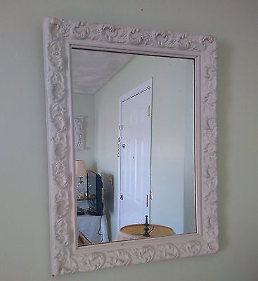 ~VINTAGE CHIPPY WHITE ORNATE WALL MIRROR SHABBY COTTAGE CHIC