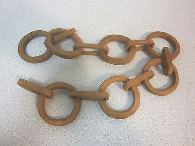 Hand carved Wood Chain Vintage folk art 26 inches long 14 links
