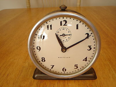 Antique Large Art Deco Westclox Metal Alarm Clock Made In U.S.A. Vintage not ben