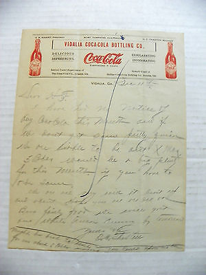 Title (ebay affiliate link): EARLY VIDALIA COCA-COLA BOTTLING CO., GA LETTERHEAD W/ 2 STRAIGHT-SIDED BOTTLES