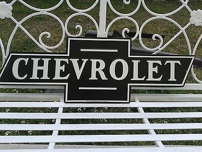 CHEVROLET EMBOSSED DIE CUT METAL SIGN WITH RAISED LETTERS 20 BY 7 INCHES