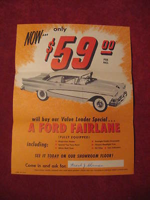 NOS 1958 Ford Dealer Show room mailer hand out Pamphlet brochure Original FOMOCO