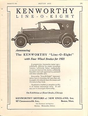 1921 KENWORTHY LINE OF EIGHT CAR AD - ORIG VIN PRINT AD
