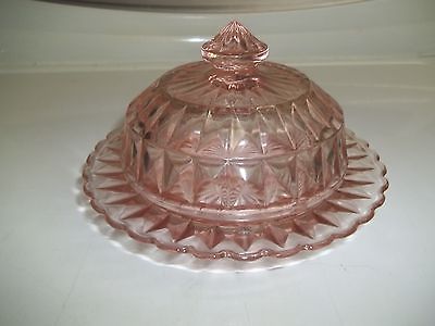 JEANNETTE GLASS CO.WINDSOR DIAMOND PINK BUTTER DISH & COVER!