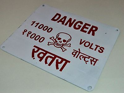 Antique Collectible 11000 Volts High Power Porcelain Enamel Danger Sign Board