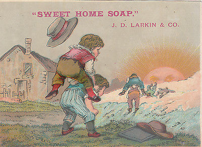 Sweet Home Soap Piggyback Climbing Sunrise J D Larkin Victorian Card c 1880s