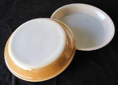 SET OF 2 FIRE KING PEACH LUSTER 9 INCH PIE PLATES #460 MILK GLASS OVEN PROOF
