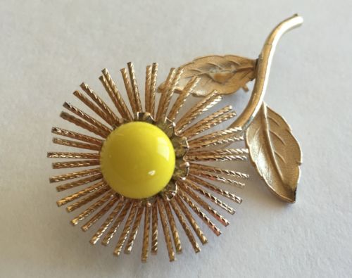 Title (ebay affiliate link): Sign WARNER Vintage Brooch Pin Yellow Milk Glass Rhinestone Flower Gold Tone 337