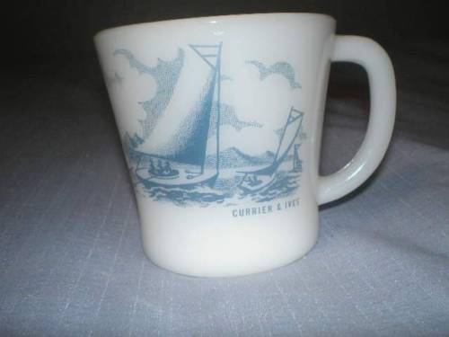 Vintage Glasbake Currier & Ives Milk Glass Mug