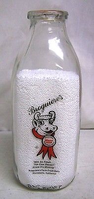 VINTAGE MONTEBELLO CALIFORNIA BROGUIERE'S FARM DAIRY MILK GLASS BOTTLE 1 QUART