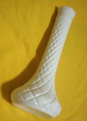VINTAGE MILK GLASS BUD VASE WITH DIAMOND PATTERN