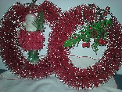 Vintage Christmas bottle brush wreaths plastic santa mercury beads