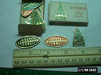 ANTIQUE 1926 BOX OF STANLEY'S METAL CHRISTMAS SEALS-CHRISTMAS TREES ETC.