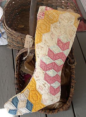 Stocking Vintage Quilt Circa 1880 Tumbling Blocks Petite~Hand Stitched 19"x8.5"