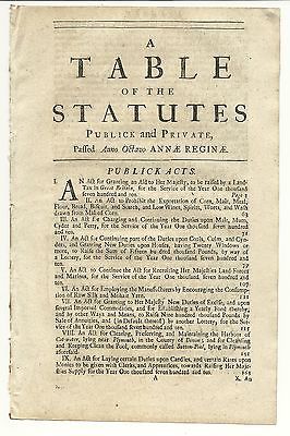 Orig. 1716 English Queen Anne era "TABLE OF STATUTES" London, 1716