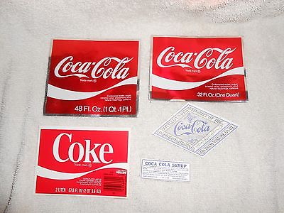 Coca-Cola Soda Labels--Lot of 5--6 1/2oz, 48oz, 32oz, 2 liter, & Syrup Bottle