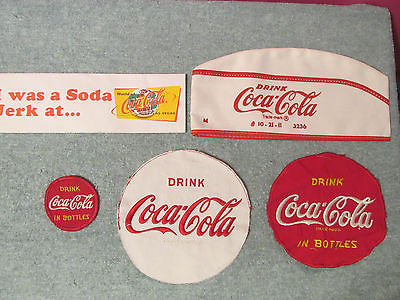 Lot 5 Coca Cola 7" cloth patches Soda Jerk hat Coke drink advertising fountain