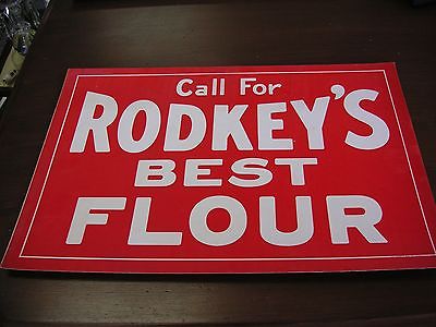 Title (ebay affiliate link): Vintage Rodkey's Best Flour Original Cardboard Store Sign 20"l x 13.75"h #1