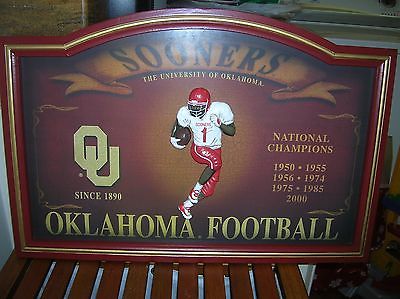 Title (ebay affiliate link): EUC OKLAHOMA SOONERS OU FOOTBALL 24x16" WOOD LICENSE SIGN PLAQUE MAN CAVE DECOR