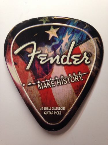 Title (ebay affiliate link): Fender Make History Embossed Guitar Pick Nostalgic Metal Tin Sign