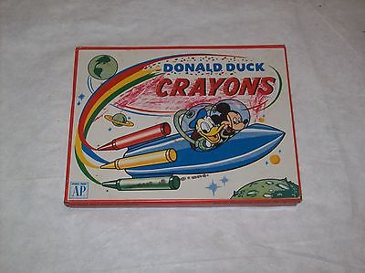 VINTAGE DONALD DUCK CRAYONS TIN WITH MICKEY MOUSE BY TRANSOGRAM CO. INC., N.Y.C.