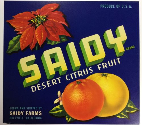 Title (ebay affiliate link): SAIDY BRAND DESERT CITRUS FRUIT CRATE LABEL VINTAGE HOLTVILLE CA 1930s DECOR