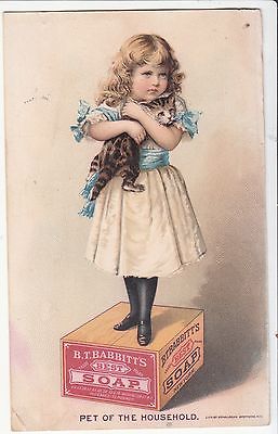 B T Babbitt's Soap Box Girl w Kitten Pet of Household Victorian Card c 1880s