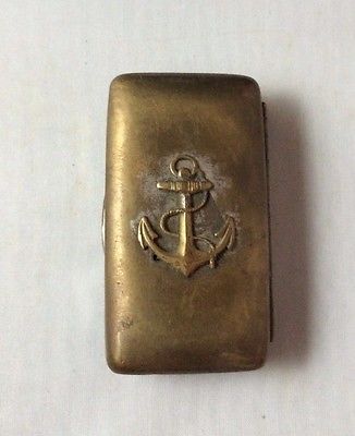 Title (ebay affiliate link): VINTAGE ANTIQUE ANCHOR NAVAL NAVY BRASS PLATE MATCH SAFE HOLDER WITH MATCHES