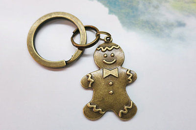 Vintage Brass Gingerbread man Pendant Keychain. Christmas