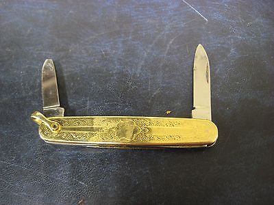 Vintage Gold Tone Two Blade Folding Keychain Pen Knife