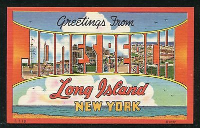 Large Letter Greetings From JONES BEACH LONG ISLAND NEW YORK Linen Postcard