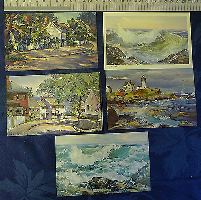5 60's-70's POSTCARDS Kennebunkport Maine Roger Deering New England Coast