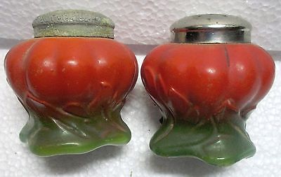 PAIR TOMATO DESIGN PAINTED "MILK GLASS" SALT & PEPPER CA. 1900