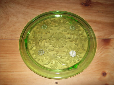 GREEN DEPRESSION "SUNFLOWER" FOOTED CAKE PLATE