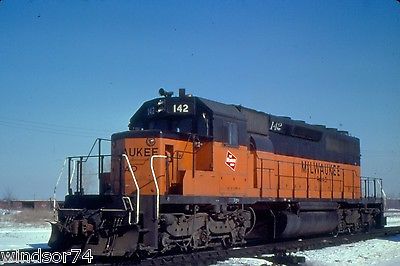 Title (ebay affiliate link): 35mm Dupe Slide Milwaukee Road Locomotive #142 Bensenville IL 1980