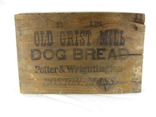 Antique Primitive OLD GRIST MILL DOG BREAD Boston, Mass Wood Crate End SIGN