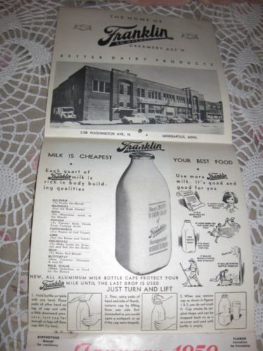 Title (ebay affiliate link): Vintage 1950s Calendar Franklin Co-op Creamery Dairy Minneapolis, MN.