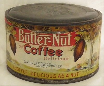 Title (ebay affiliate link): Vintage 3 lb. Butter-Nut Coffee Tin with original label, circa 1910s to 1930s