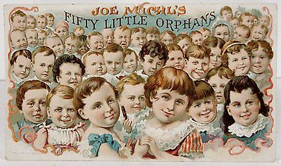 ca1890 CHROMOLITHOGRAPH LITTLE ORPHANS CIGARS ADVERTISING SIGN SMALL HANGER PULL