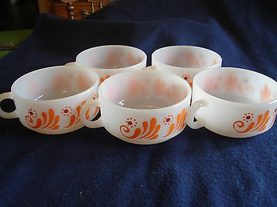 Title (ebay affiliate link): 5 Vtg Mid Century Glasbake Milk Glass Chili Soup Stew Bowls With Handles Orange